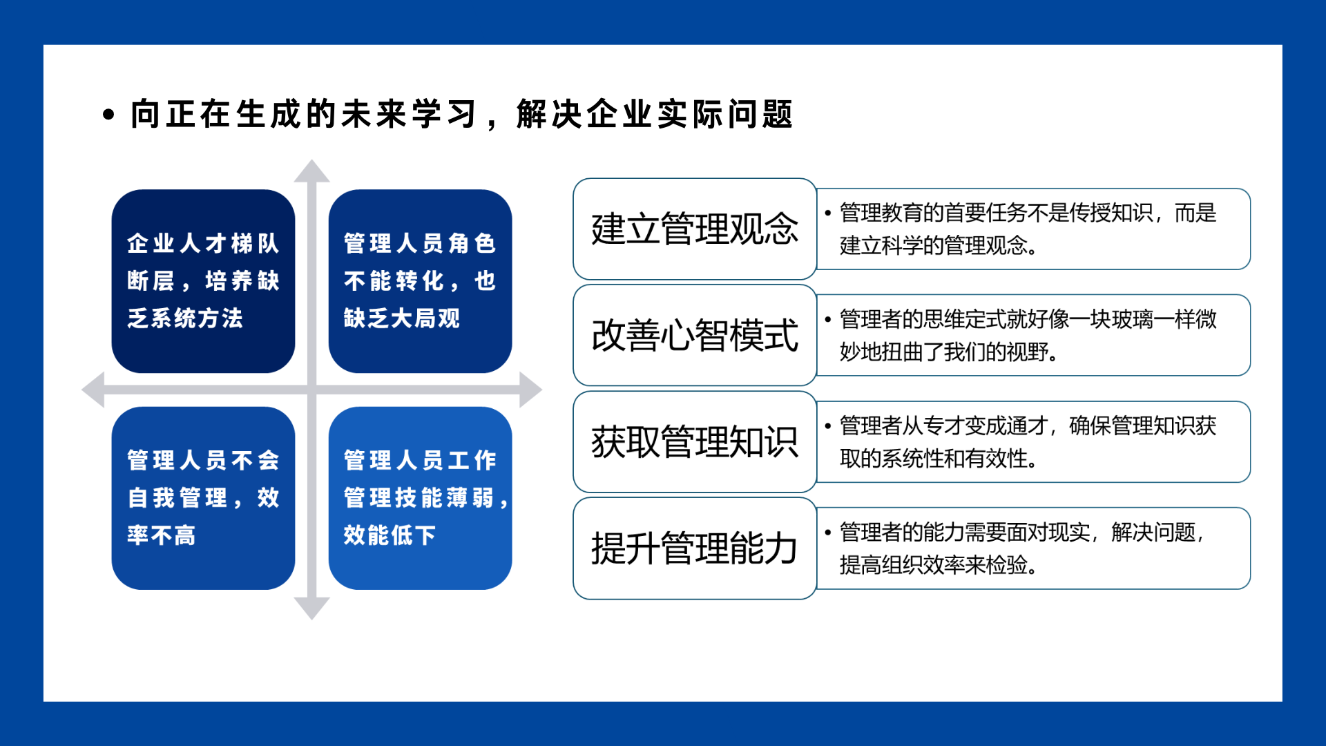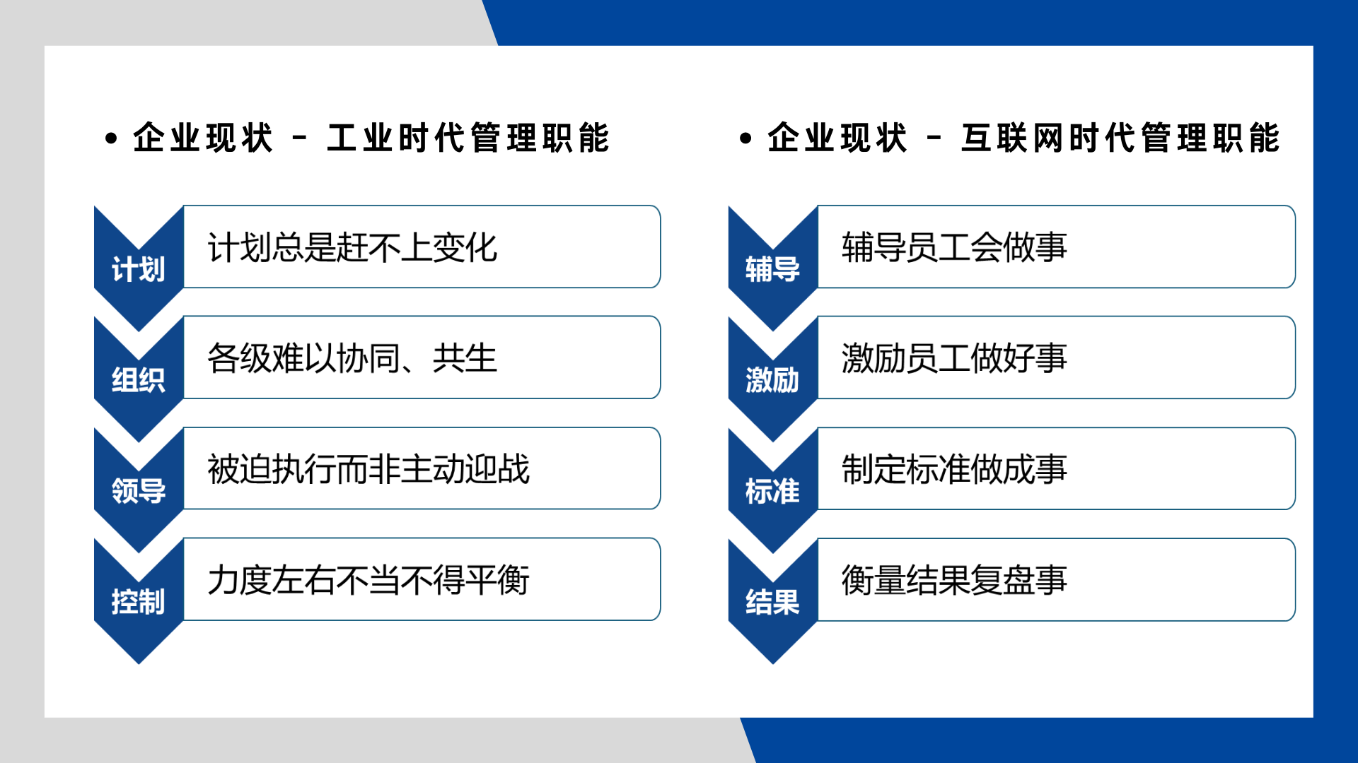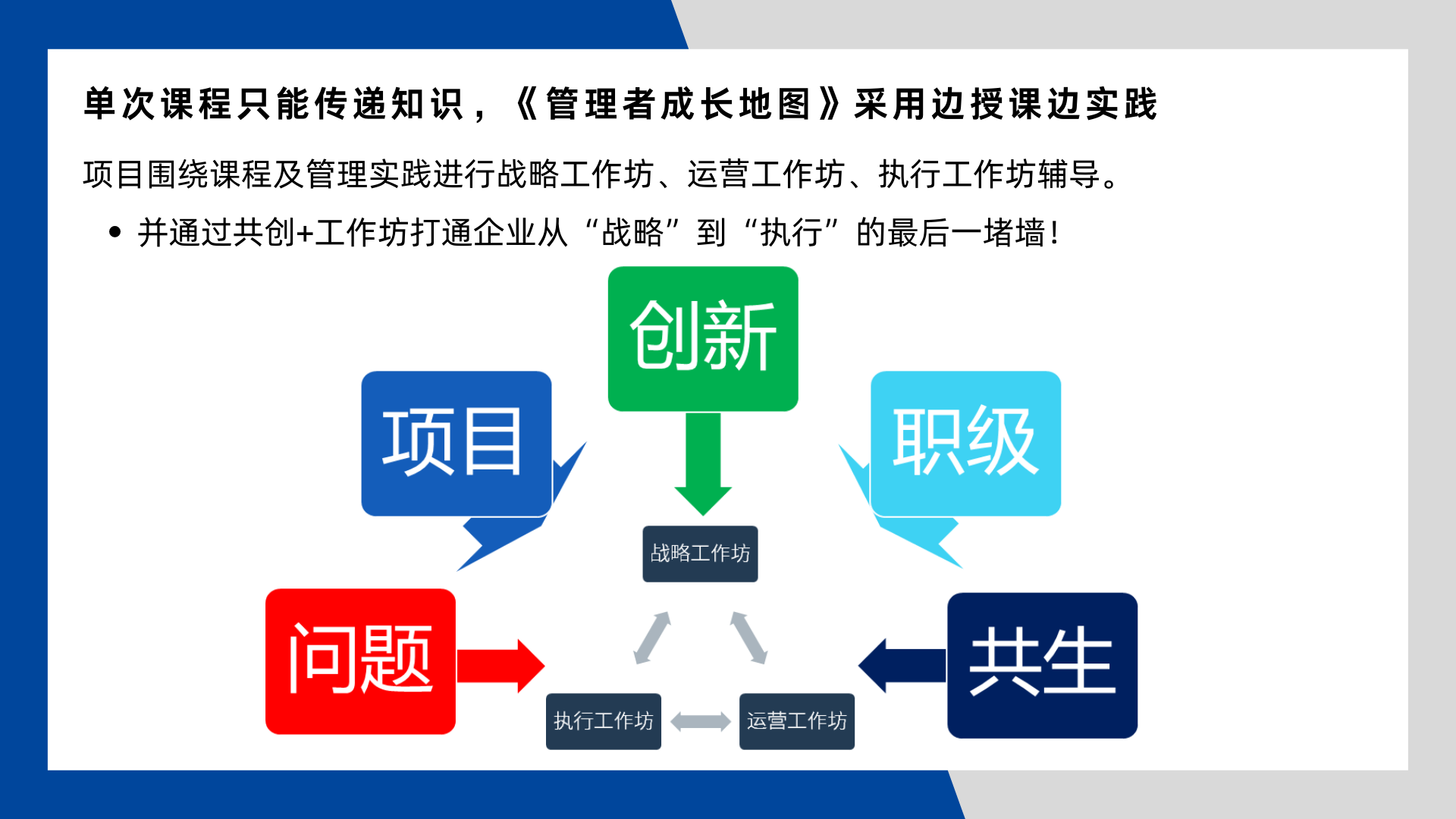 在一個信息、知識爆炸的年代,大家想獲得知識很便捷,甚至很多企業的管理者學了大量的課程,對通用類課程已經提不起興趣,更別提去實踐和運用,再有也正是很多管理人員學了很多課程,大家認知的不同,導致青睞的工具、流程不同,這很可怕,就相當于發動機與變速箱不協調,車子怎么跑得起來。