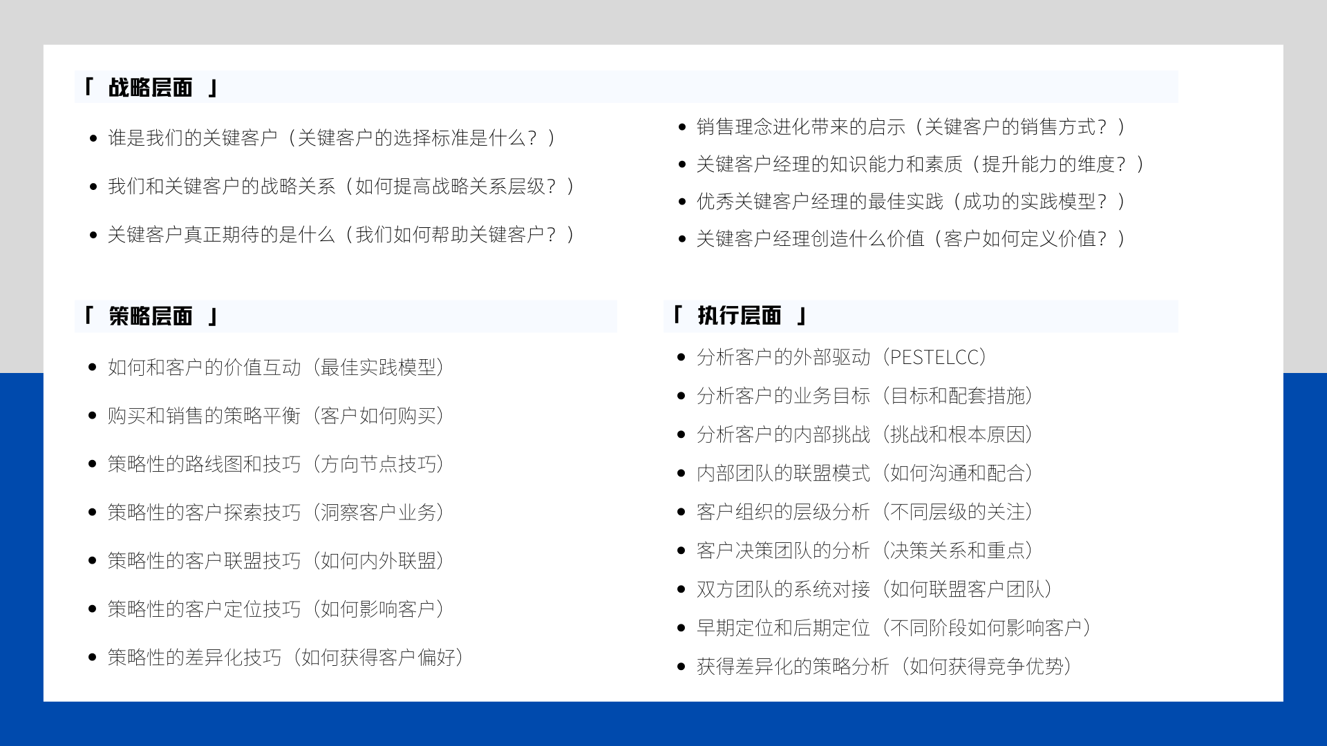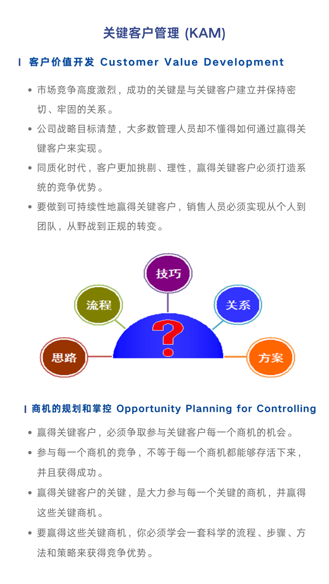 1、從全局的角度系統地洞察關鍵客戶管理 - 系統地掌握關鍵商機的規劃和掌控技能
