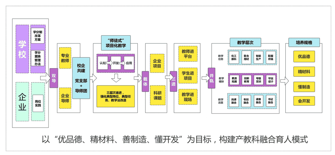 以“優(yōu)品德、精材料、善制造、懂開發(fā)”為目標,構(gòu)建產(chǎn)教科融合育人模式